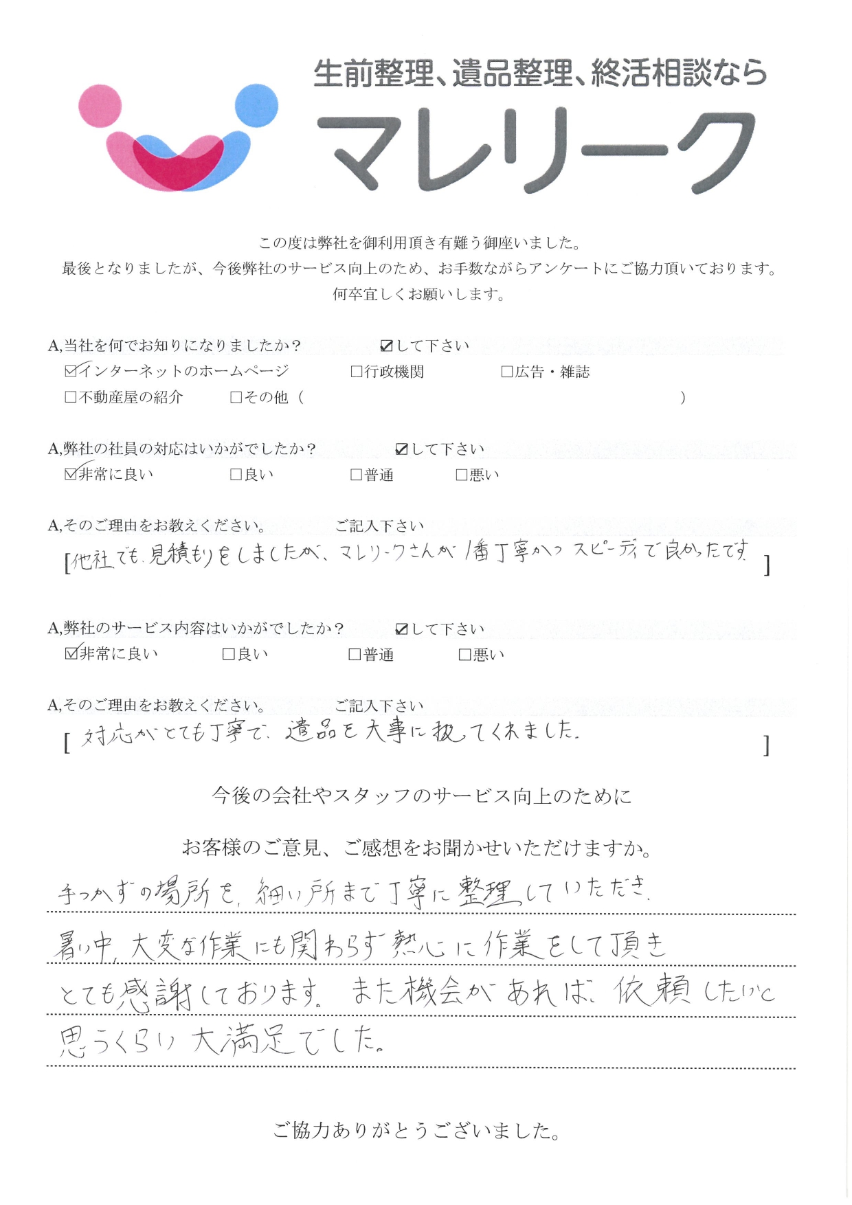 対応がとても丁寧で、遺品を大事に扱ってくれました。